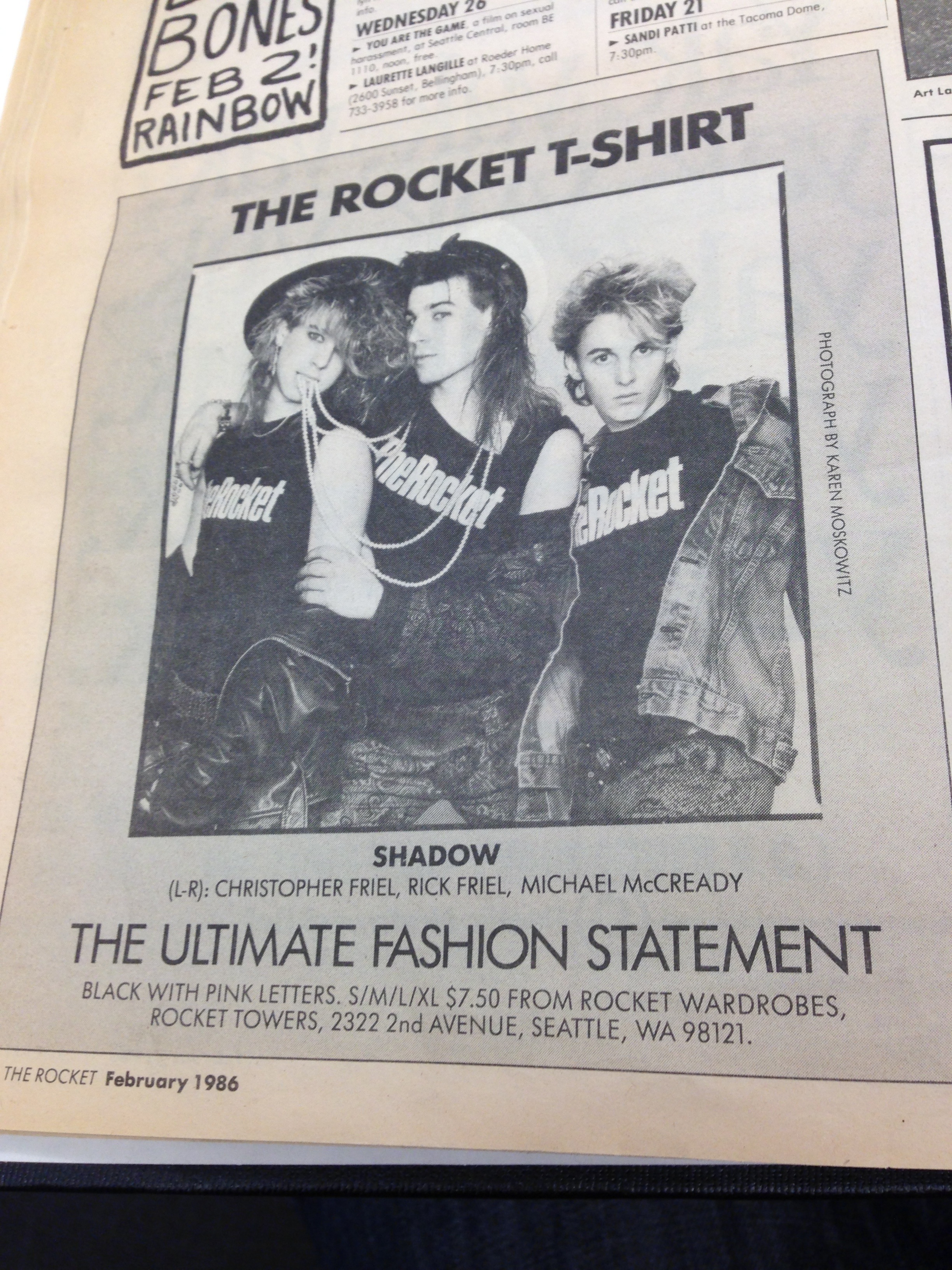 Spotted – a much younger Mike McCready with his then-band Shadow in an ad in February 1986 edition of The Rocket